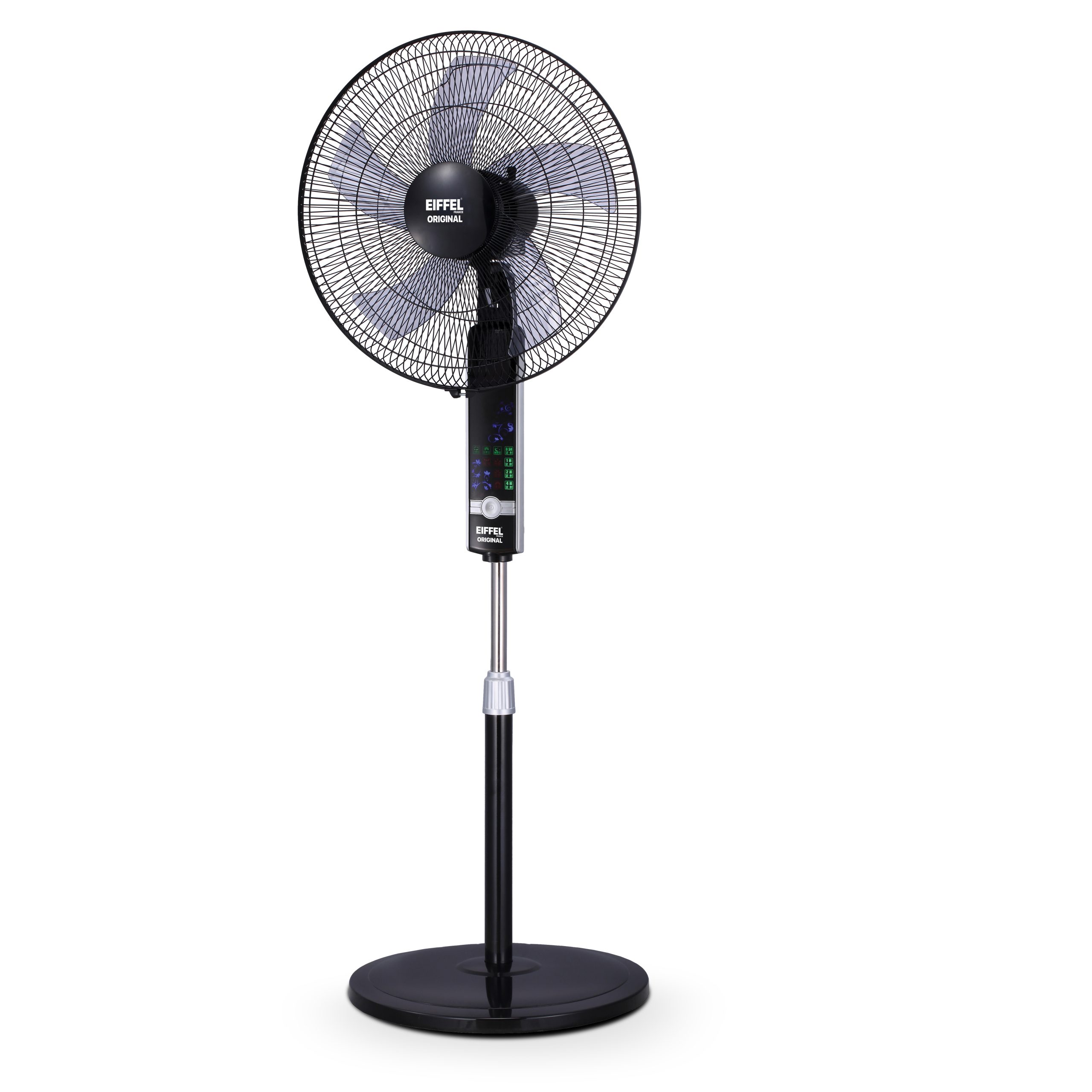 پنج پره، سه سرعت، دارای کنترل و تنظیم از راه دور، ارتفاع قابل تنظیم، ایستاده و رومیزی